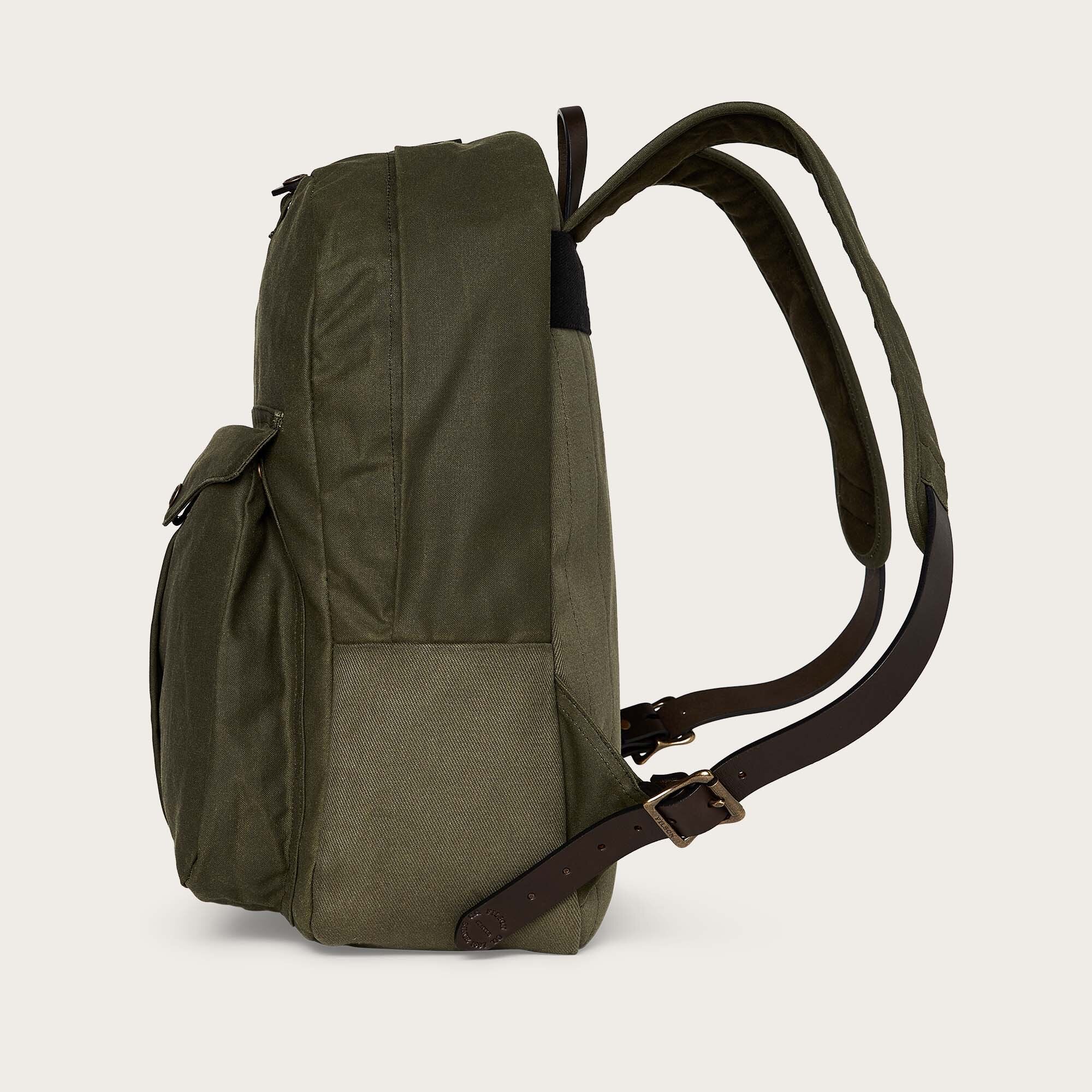 We combined the individual strengths of several of our signature materials to create our best-selling backpack. The main compartment is built with oil finish Tin Cloth to protect your gear from rain, sleet and snow, just as it’s protected generations of loggers and sportsmen in the rain-soaked forests of the Pacific Northwest. Tin Cloth is a tightly-woven canvas duck that’s been thoroughly saturated with a paraffin wax formulation for maximum water repellency. Our 2-ply by 3-ply Rugged Twill, an industrial-strength fabric from the iconic British Millerain, forms the back panel and reinforces the base for added structure and durability. The padded shoulder straps are built with Tin Cloth and lined with Moleskin, a sueded cotton which minimizes slipping while improving breathability. The contoured, adjustable straps are secured to the backpack with vegetable-tanned Bridle Leather from Wickett & Craig, the historic Pennsylvania tannery since 1867. Each Bridle Leather hide in our Seattle factory has been slowly steeped in an environmentally-friendly bark-tannin solution, with tallows and waxes added in the final stages for suppleness and luster. The final result is a leather that’s as well-suited for our luggage as it is for bridles and saddlery.