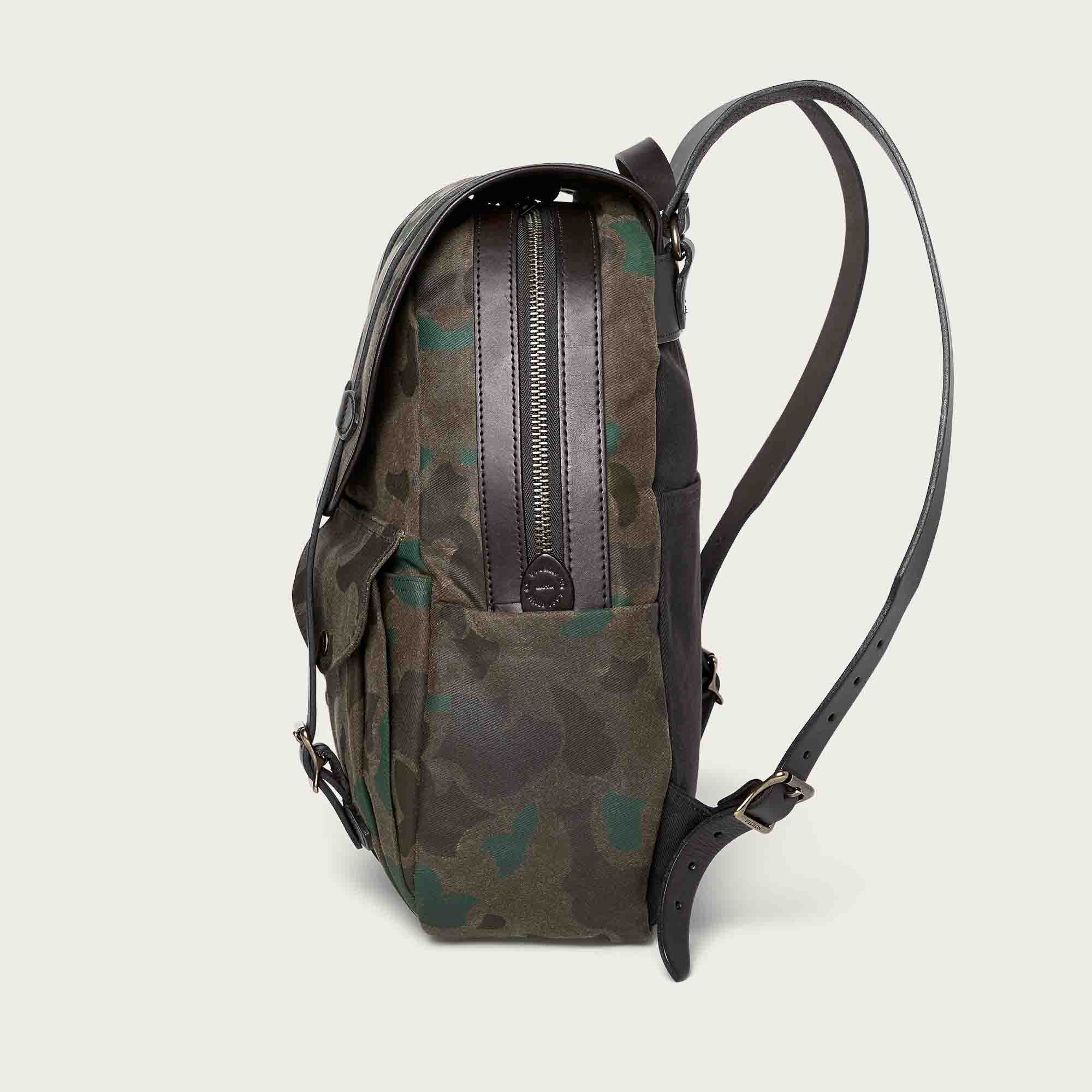 This heavily waxed variation of our heavy-duty Rugged Twill is highly water- and-abrasion resistant. The shoulder and storm flap straps are built with thick Bridle Leather from Wickett & Craig, one of the last remaining vegetable tanneries left in the USA. The exterior front pockets secure with snapped flaps, and the back panel features a full-width stow pocket. The main compartment’s brass YKK® zipper extends down the sides for easy access to contents and is protected by a large storm flap. Custom solid brass buckles.