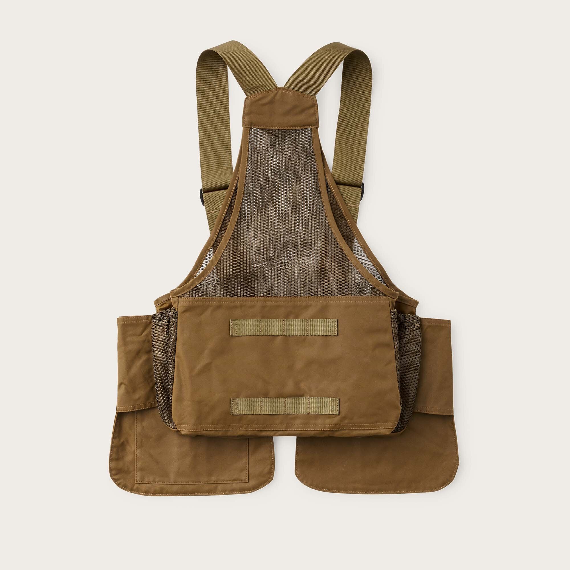 A breathable mesh rear panel makes our Mesh Game Bag perfect on any hunt from early season to late winter. Water-repellent, abrasion-resistant oil finish Shelter Cloth pockets hold shells, calls and other hunting accessories. The rear game pocket is sized for a limit of upland birds or small game. Two water-bottle pockets keep you and your hunting dog hydrated. Adjustable nylon shoulder straps and front buckle closure for a custom fit and easy layering.